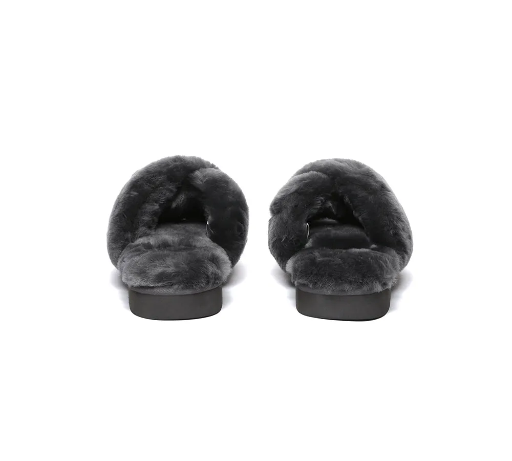 EVERAU® UGG Women Crossover Fluffy Slides Leanna #EA2047