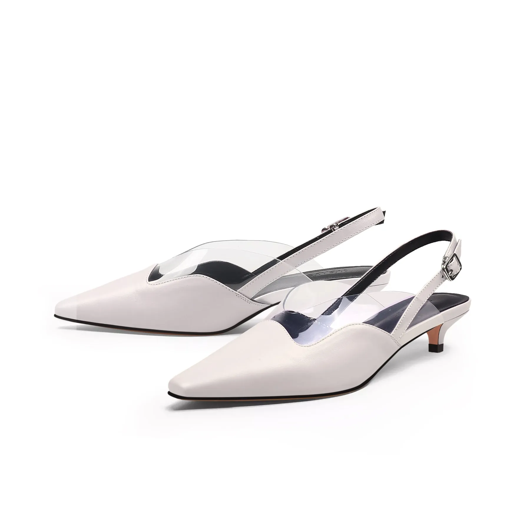 - Low kitten heels for comfortable all-day wear